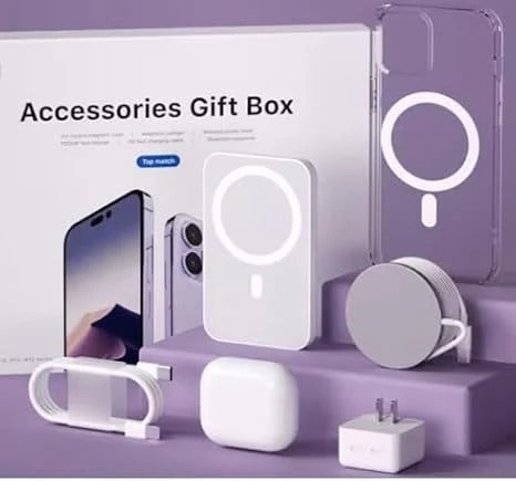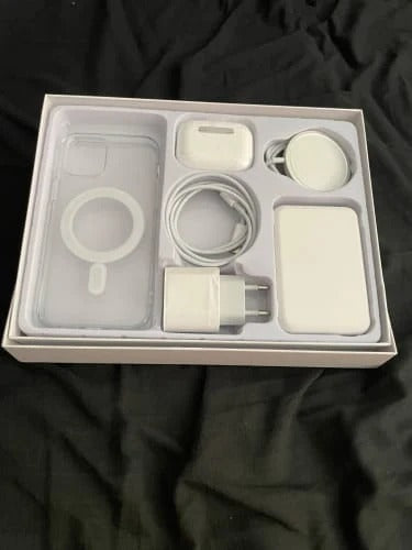 Un kit élégant qui réunit tous les essentiels pour une expérience complète. Profitez d’une montre connecté, d'une coque MagSafe, d’une ultra-smartwatch, d’AirPods, d’un chargeur MagSafe et d’un câble Lightning – le tout soigneusement intégré dans un écrin raffiné, spécialement conçu pour sublimer votre quotidien connecté.